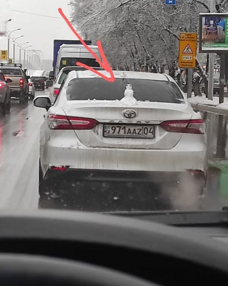 Қарды сағынған тұрғын бүгін көлігіне кішкентай қылып аққала салып алыпты.
