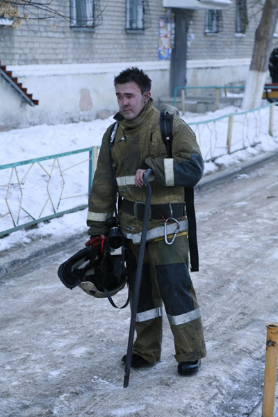 Корреспонденту Tengrinews.kz удалось встретиться с героем фотоснимка. Им оказался 23-летний младший сержант гражданской защиты Дамир Байжасаров. В рядах пожарных он оказался после армии, прошел три месяца стажировки в школе первоначальной подготовки и вот уже 2 года как работает в пожарной части. Фото, которое принесло Дамиру известность, было сделано 14 декабря во время крупного пожара в малосемейном общежитии, тогда погибли двое мужчин.
