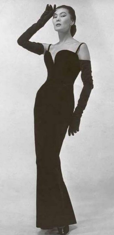"Самое необычное имя, которое я когда-либо слышала - Алла Ильчун. Модель Диора недавно прибыла в Штаты из Парижа. Ее имя звучит так, как будто она сама его придумала. Алла, в жизни - мадам де Дюльмен, признает, что платья с открытым декольте обычно гарантируют успех с клиентками, будь то француженки, американки или элегантные дамы любой другой национальности. Некоторые из этих поразительных вечерних нарядов Диора открывают зрителю 36-дюймовый бюст Аллы, как самые смелые наряды Мэрилин Монро. Однако стройная и высокая парижская модель никогда не выглядит напряженной и не поправляет наряд на груди. Любимое платье Аллы - красный креповый наряд под названием Maxim’s. Его свободный лиф, рукава длиной в три четверти и тонкий подол демонстрируют шик и скрытую элегантность. Но U-образный вырез открывал так много прекрасной Аллы, что Диор прикрепил красную розу внизу декольте, чтобы сгладить эффект. В личной жизни Алла придерживается сдержанного стиля - свитера и юбки. Несмотря на свое евразийское происхождение, Алла преподносит свой гардероб как настоящая парижанка", - говорится в отзыве модного эксперта Dorothy Kilgallen.