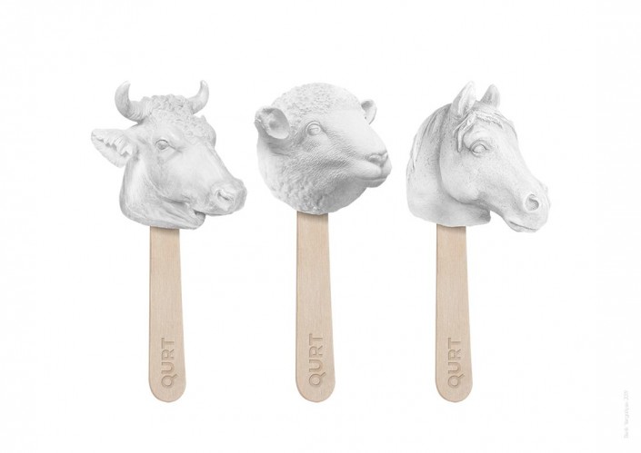 "Құрт сүттен жасалады, ал сол сүтті бейнелеyген жануарлардан аламыз. Бұл табиғилық мәселесін ашу мақсатында жасалды. Мұндай өнімдерде форманы жаңашаландыру үрдісі бүгін шыққан дүние емес, бірақ құртқа бұрын ешкім олай жасап көрмеген", - дейді Берік Ерғалиев.