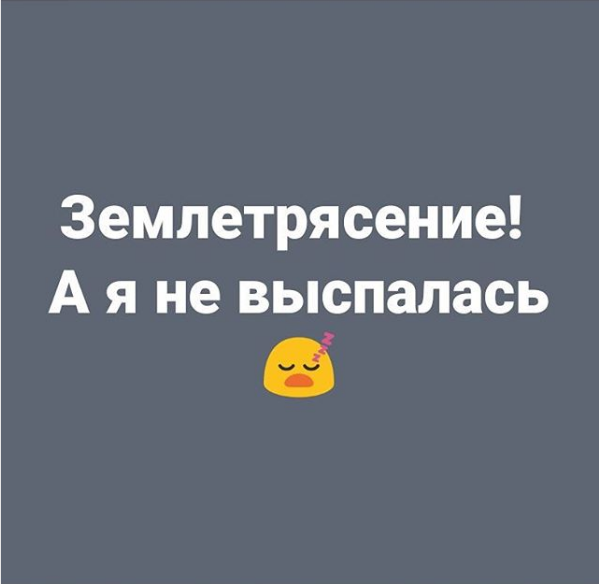 "Не знаю, сколько баллов было, но уснуть теперь не смогу. Испугалась. Каждое землетрясение я думаю, интересно, сегодня ли я умру. Ну, как бы бессмысленно рыпаться, когда живешь на 9 этаже и дом качается как огромная нервная колыбель (...)", - написала Дарья Спивакова.