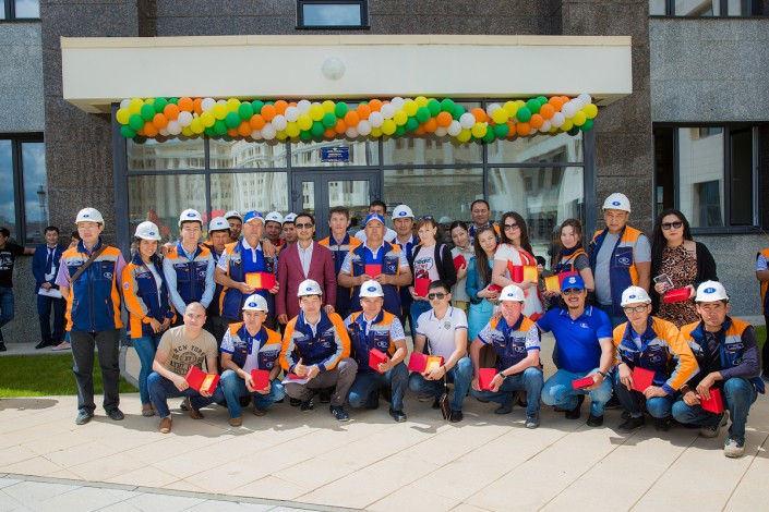 Радостных новоселов приехал поздравить председатель Правления холдинга BI Group Development Амангельды Омаров: "Прошу вас бережно относиться к тому, что построено за ваши деньги. Спасибо команде проекта за реализацию идеи!"
