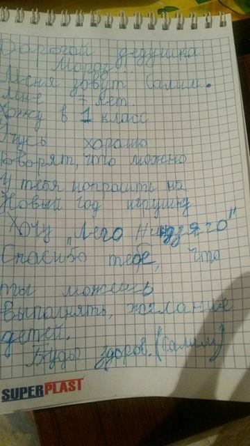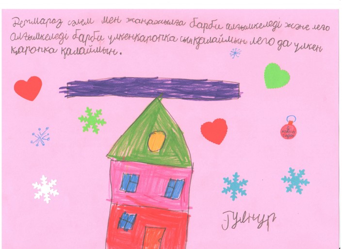 В письме Деду Морозу Аружан попросила зимнюю одежду - куртку, джемпер, спортивный костюм и кроссовки. Еще девочка попросила куклу. И дедушки морозы в лице волонтеров уже исполнили детскую мечту.