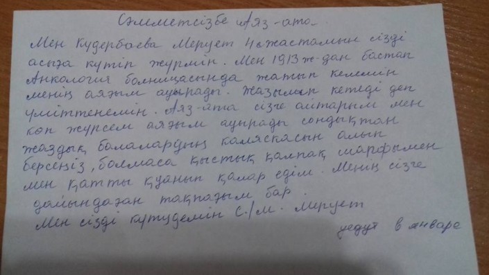 "До этого дочка вообще ничем не болела, никаких проблем со здоровьем не было. В школу ходила, танцевала, участвовала во всех конкурсах, на плавание ходила, играла в теннис. Была очень активной девочкой. После операции дочка не может ходить, - вздыхает мама Айгуль. - Я думаю, что это все временно. Здесь мы уже почти год. Домой ездим с перерывами. Наше самое большое наше желание - поскорее выздороветь, встать на ноги и вернуться домой".
