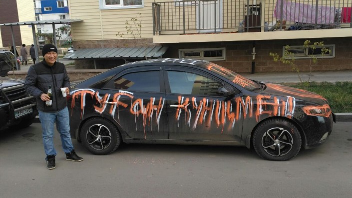"Утром я вышел из дома, должен был ехать в аэропорт, чтобы встретить друга из Польши. Радостный вышел из дома и у подъезда увидел свою исписанную краской машину. Настроение сразу упало, я подумал: "Почему именно моя машина, я ведь припарковался правильно". Я решил, что нужно идти к охране и звонить в полицию. Пока шел к охранникам, увидел машину друга. Только тогда я понял, что произошло", - поделился Бекбол Калибеков. Оказалось, что друг из Польши прилетел раньше и также принимал участие в инсценировке.