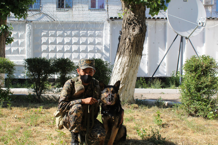 После службы собака остается в кинологическом городке и ждет хозяина. Никого чужого к себе не подпускает и выполняет только команды Ермека.