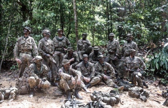 Как пишет газета Daily Mail, фотография была сделана в рамках учений по разведке в Юго-Восточной Азии, которые проводят солдаты полка Дворцовой кавалерии (Household cavalry). Различить военных в камуфляже среди лесных зарослей практически невозможно.