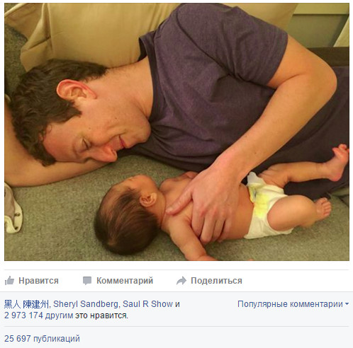 Фото Цукерберга с новорожденной дочкой собрало почти 3 миллиона лайков