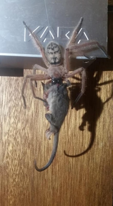 Супруги Джастин и Адам Латтон стали свидетелями жуткой картины в Национальном парке Маунт-Филд на острове Тасмания (Австралия). Семейная пара сфотографировала гигантского паука, пожиравшего карликового опоссума (млекопитающее семейства сумчатых). Редкие снимки опубликованы на странице Tasmanian Insects and Spiders в Facebook.