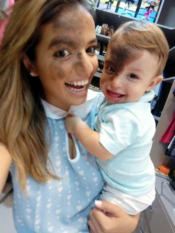 Жительница бразильского города Касерес попросила нарисовать на своем лице такую же огромную родинку, как у ее ребенка. Об этом сообщает The Independent.