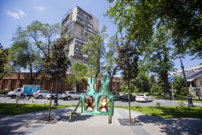 Автор - Эльдар Хасанов. Локация - сквер на улице Курмангазы, угол проспекта Абылай хана.