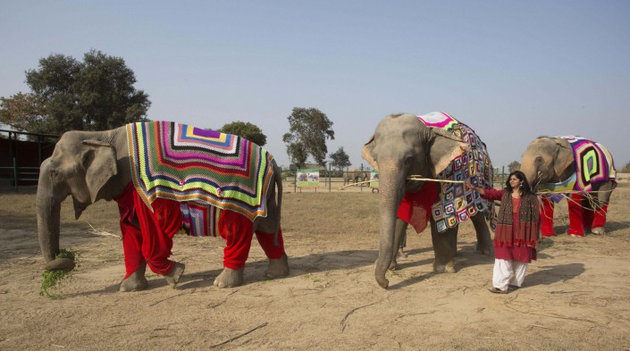 Индийцы шьют пижамы для мерзнущих слонов Фото Roger Allen.