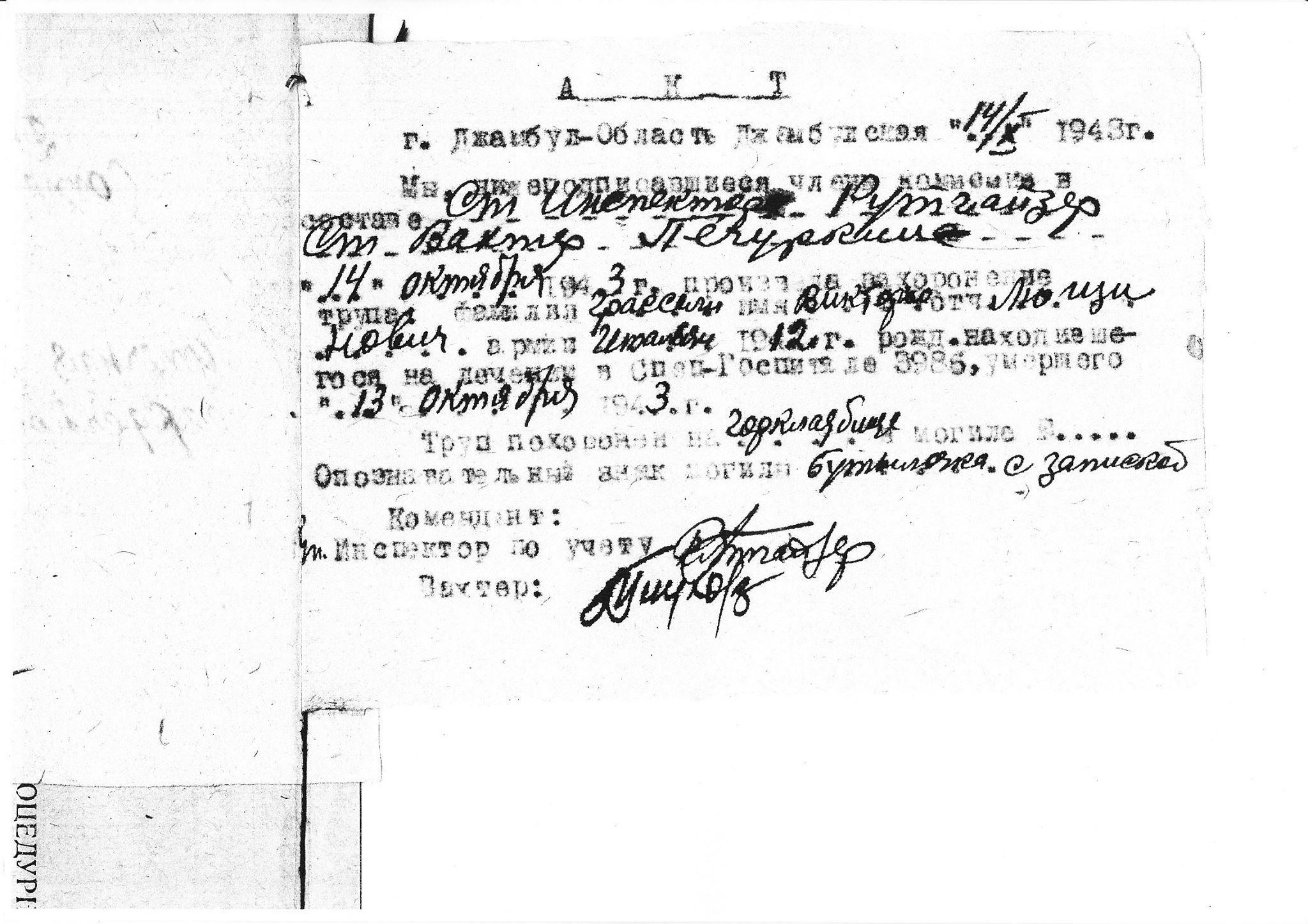 Журналисты Tengrinews.kz направили в акимат Жамбылской области запрос с просьбой предоставить какие-либо данные о захоронении итальянского солдата. К сожалению, в акимате сообщили, что не имеют данных о захоронении умерших за 1943 год в Джамбуле (ныне Тараз). По информации пресс-службы акимата области, архивные материалы о захоронении имеются лишь с 60-х годов.