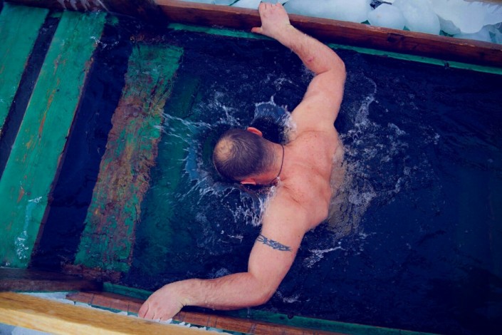 Купание в проруби, Караганда. Фото Болата Аймагамбетова.