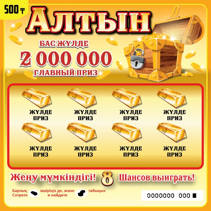 В Казахстане стартуют продажи моментальных лотерей "Бақытты 7" и "Алтын". Теперь каждый житель республики может одномоментно выиграть до двух миллионов тенге. По данным единого оператора лотерей АО "Сәтті Жұлдыз", призовой фонд по обоим видам розыгрыша составляет 468 миллионов тенге.
