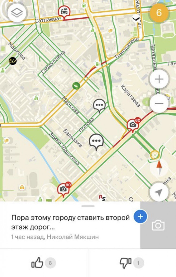 Ал біреулер кептеліске көніп, бірнеше минут бір орында тұрған соң, қосымша арқылы әзілдей бастайды. Мысалы, кептелісте тұрғандардың бірі "Бұл қалаға жолдың екінші қабатын салатын сәт жетті" деп әзілдеген.