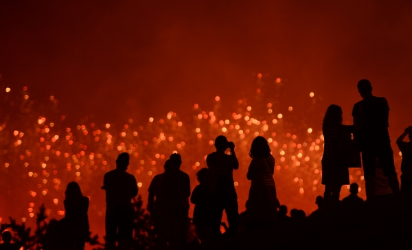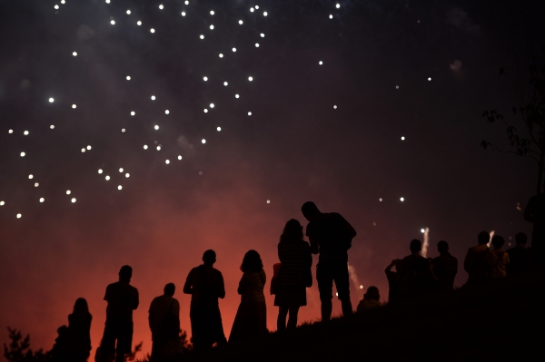 Самая красочная часть закрытия фестиваля началась только с заходом солнца в 21.30. Гости праздника за время ожидания не один раз успели промокнуть под дождем, который то и дело неожиданно начинался.