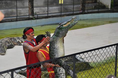 Отметим, что шоу крокодилов является одним из самых популярных мероприятий для туристов. Пощекотать нервы приходят как дети, так и взрослые. Артисты демонстрируют невероятную храбрость, засовывая свои руки в пасть хищника и показывая различные трюки с животными, - таким образом они держат зрителей в напряженном состоянии.