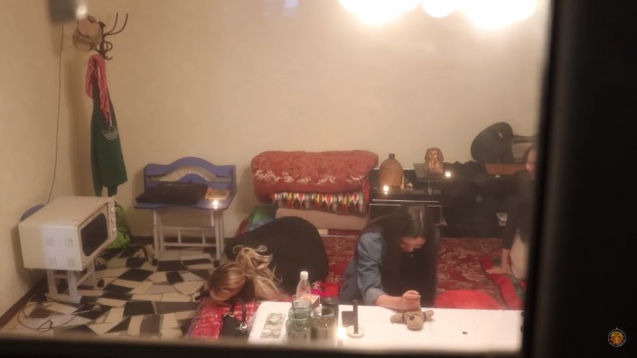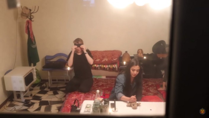Пранкеры с помощью подруг девушки заманили ее в дом, где якобы принимает гадалка и ясновидящая. Там перед Айжан было устроено целое представление с завязыванием глаз, заговорами и избиением деревянной палкой виртуального врага. В конце колдунья заставила интернет-звезду кричать и довела ее до слез, когда попросила воткнуть иглу в мягкую игрушку.