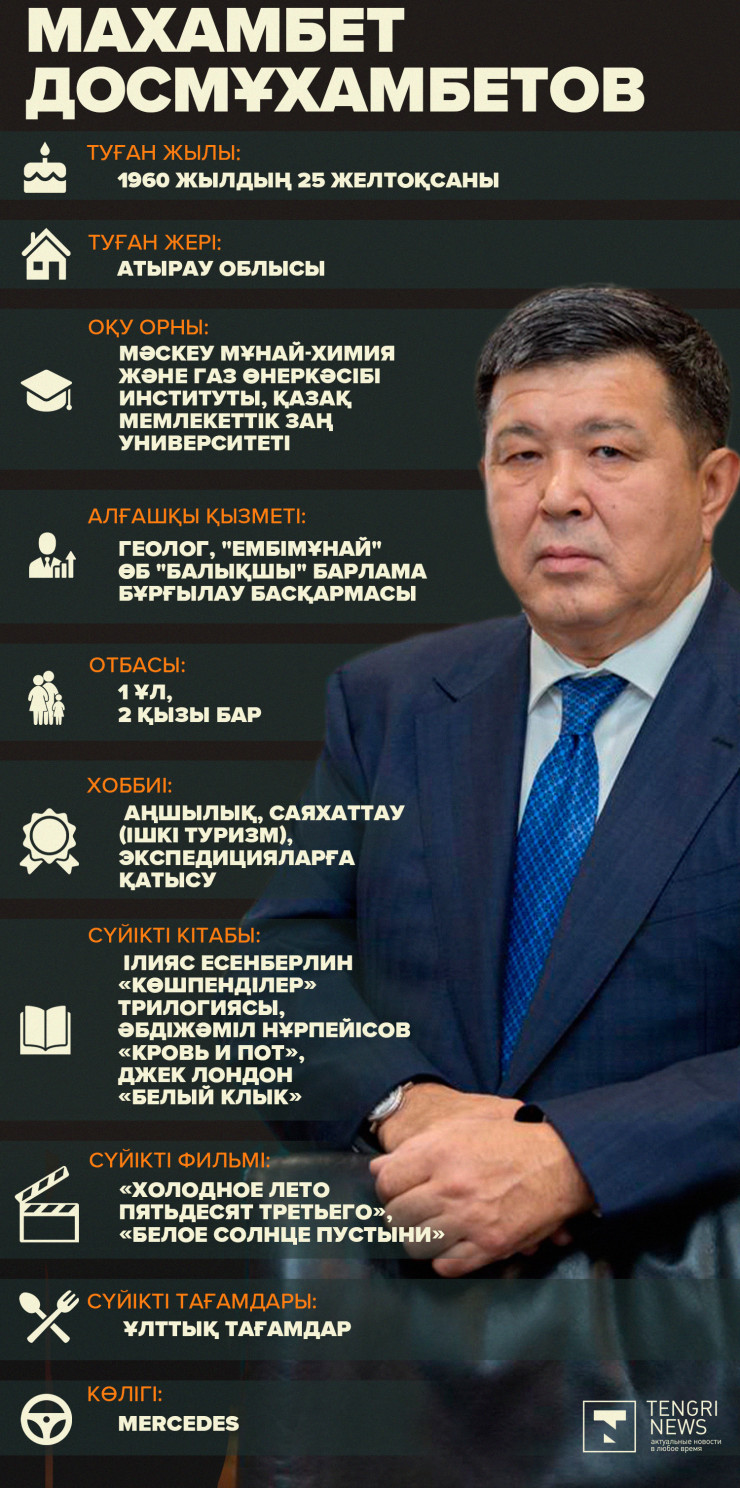 Былтыр мемлекеттік қызметтегі соңғы тағайындалғандардың бірі Атырау облысының әкімі болды. 2019 жылдың 18 желтоқсанынан бері мұнайлы өлкені Махамбет Досмұхамбетов басқарады. Тengrinews.kz тілшісі Атырау облысының жаңа әкімі туралы мәліметтер ұсынады.