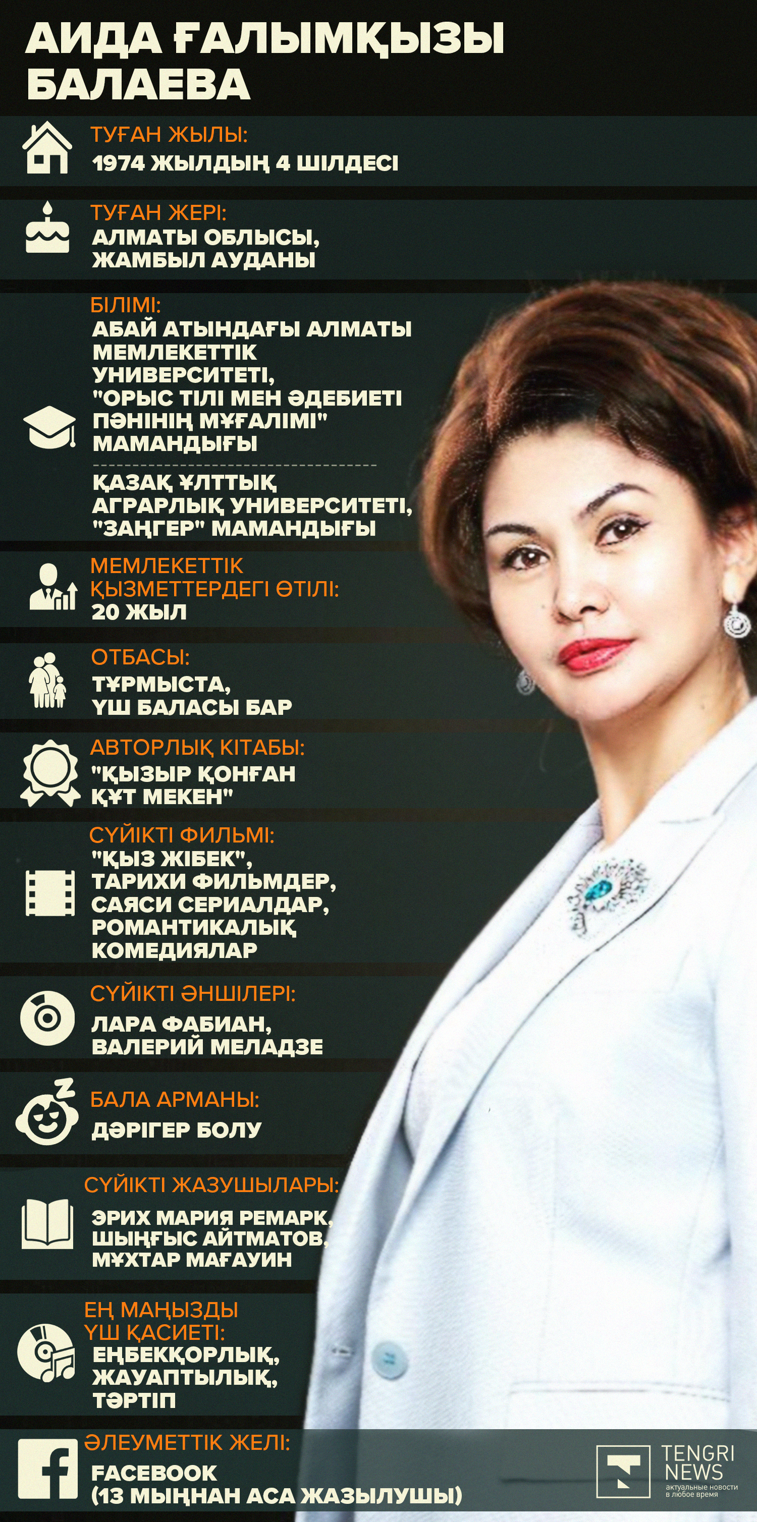 Өткен айда Аида Балаева Қазақстан Республикасы Президентінің көмекшісі болып тағайындалған еді. Оның Президент көмекшісі - Президенті Әкімшілігінің Өтініштерді қарауды бақылау бөлімінің меңгерушісі болып қызмет етіп келе жатқанына бір айдан асты. Бұл оның мемлекеттік қызметтердегі жетінші жұмыс орны. Tengrinews.kz тілшісі Аида Балаева туралы деректерді жинап шықты.