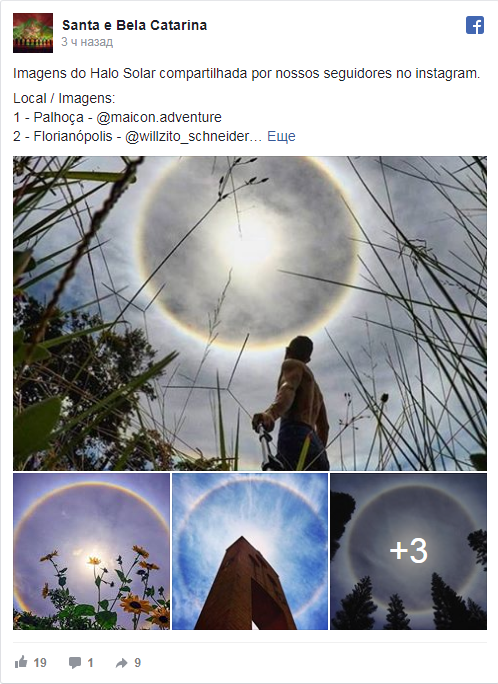 Бразильцы наблюдали оптический феномен 26 февраля. Гало было видно в столице штата - Флорианополисе, а также в нескольких близлежащих городах.