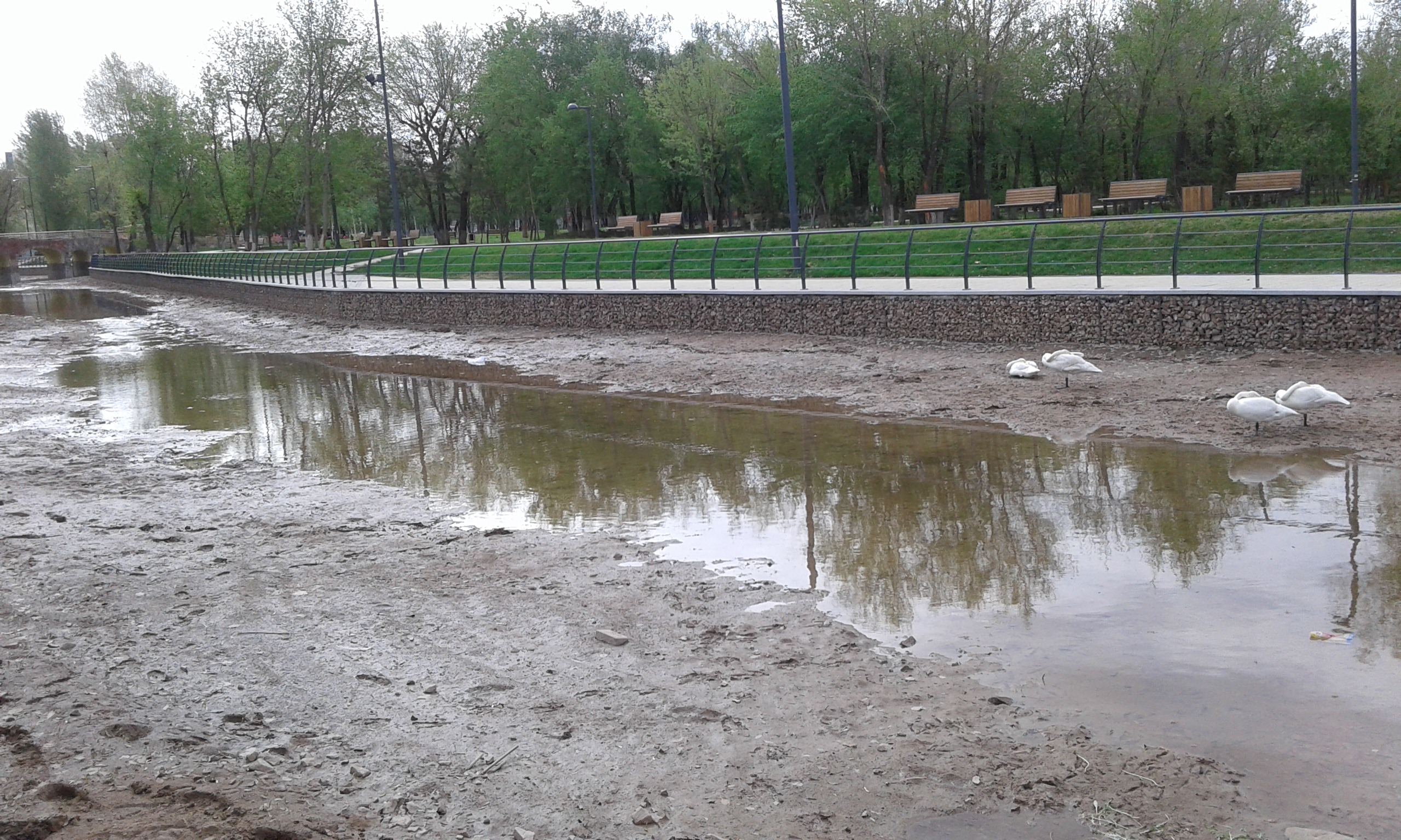 В минувшие выходные жители и гости Астаны, посетившие столичный парк, могли стать свидетелями неприятной, вызывающей жалость картины. Пруд с лебедями был практически осушен, птицам оставили лишь неглубокий ручеек, больше похожий на лужицу, сообщает корреспондент Tengrinews.kz.