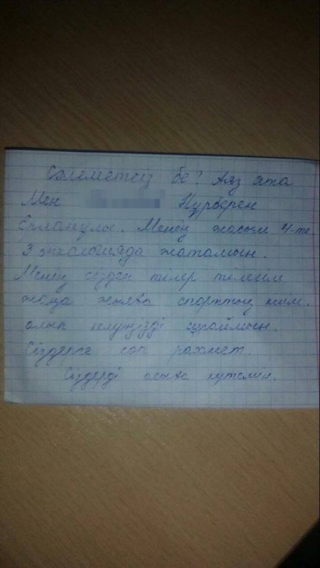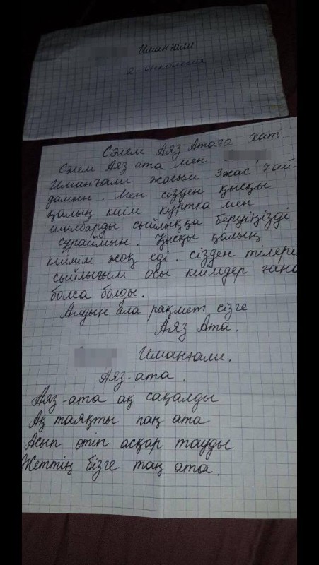 За четырехлетнего Нурберена послание Деду Морозу также написала мама. В качестве новогоднего подарка она попросила спортивную одежду.
