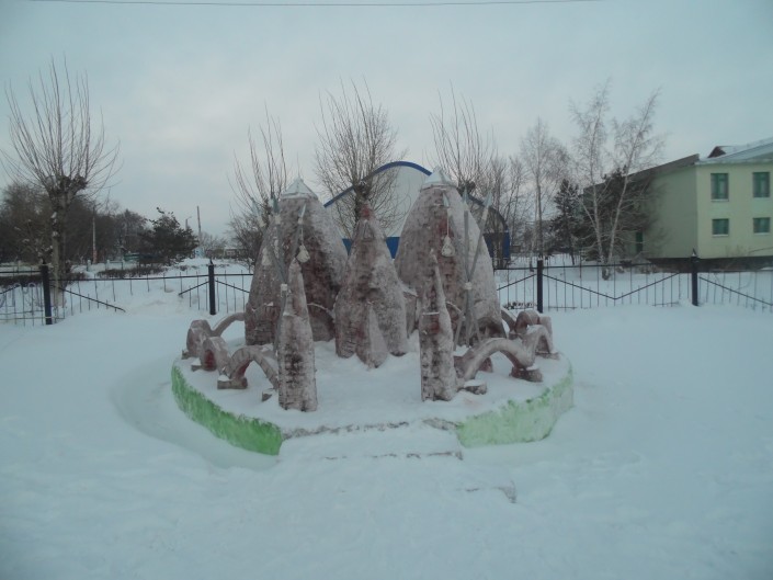 Парк снежных фигур появился на центральной площади села Саумалколь. Главная композиция - здание Акорды. Фигура высотой три метра имеет ночную подсветку. Есть и другие достопримечательности столицы, но уже поменьше. Постамент каждой не менее полуметра. Кроме того, умельцы слепили из снега фигуру Золотого человека.