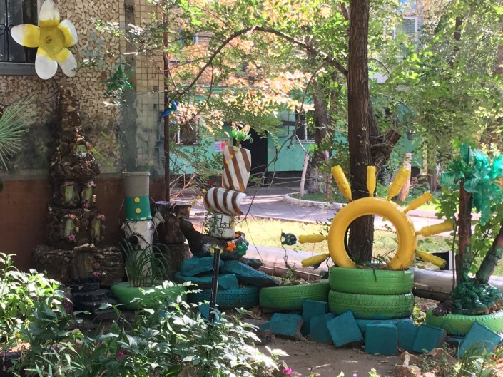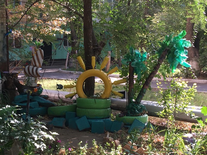 В старой части Астаны во дворе одного из домов по адресу улица Бейбитшилик, 42, можно увидеть необычный палисадник. Он выполнен из подручных материалов - пластиковых бутылок, монтажной пены, банок. Этот сад напоминает какой-то сказочный мир, в котором каждый раз появляются все новые персонажи. Подробнее - в репортаже корреспондента Tengrinews.kz.
