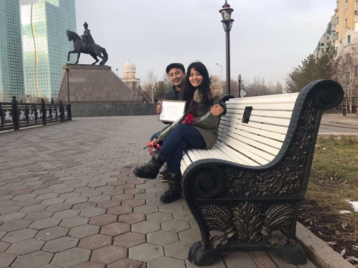 "Сегодня начата реализация еще одного значимого проекта, "Именные скамейки", который, уверен, принесет новый импульс развитию нашего района. (...) На протяжении всего периода мы получили очень большое количество заявок на установку именных скамеек, и сегодня первые две из них гармонично расположились в самом излюбленном для прогулок месте - на набережной реки Есиль. Одним из первых признание в любви своей второй половинке и городу сделал Алибек Сисембин", - написал Турлубек.