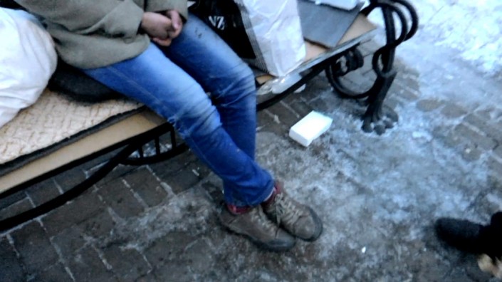 Разбудили этого человека дворники, когда на часах было уже около 8 утра. Сначала ранним утром "неопознанный объект", который с головы до ног был накрыт легким одеялом, больше похожим на покрывало, заметила женщина, осуществлявшая уборку парковой зоны. Она говорит, что потревожила мужчину, чтобы убедиться жив ли он, а после этого оставила его в покое.