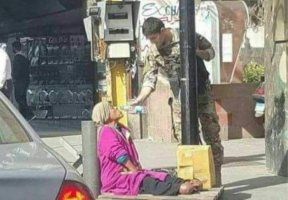 Некоторое время назад фотография уличной нищей облетела местные СМИ. На снимке женщине помогает военнослужащий армии Ливана. В жаркий день он подносит к губам бездомной бутылку с водой. Позднее солдат получил похвалу от командующего за "сострадание и человечность".