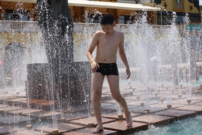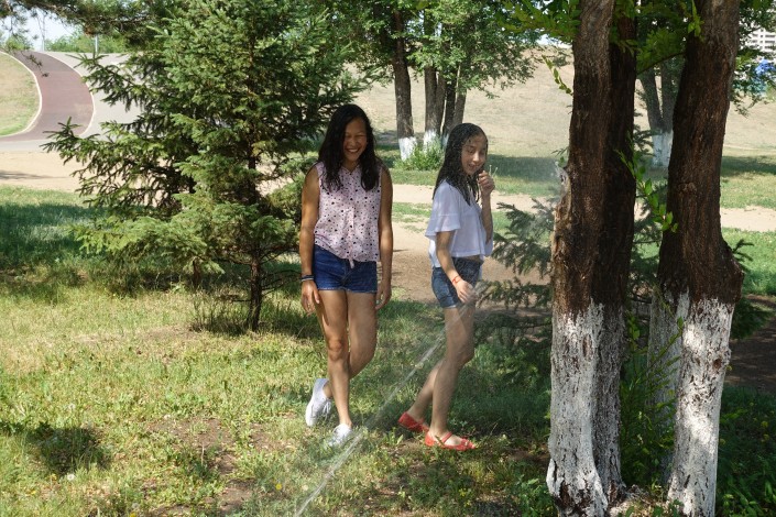 Так спасаются от жары в городском парке.