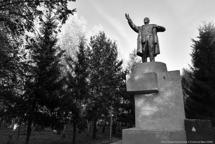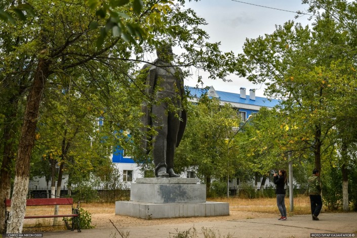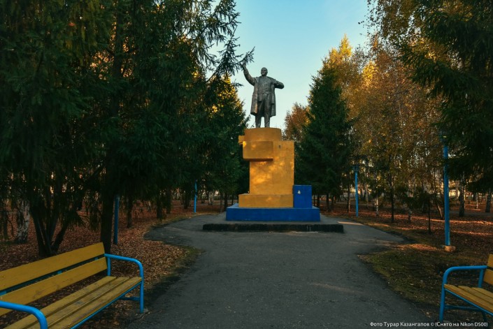 А этот серебристый Ленин стоит в парке северо-казахстанского города Мамлютка. Этот район находится на границе с Россией.