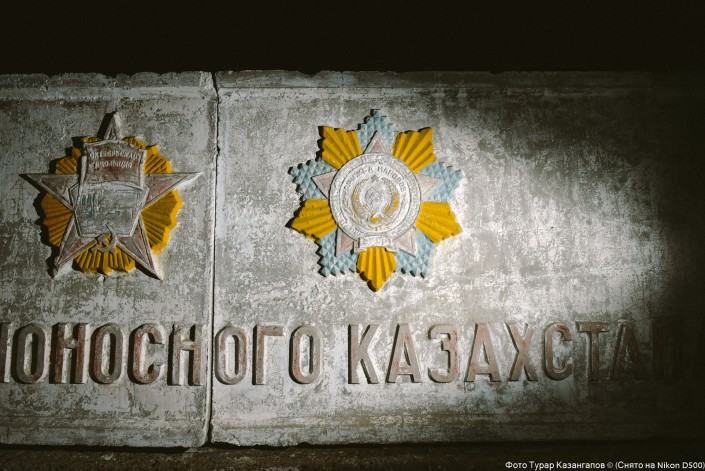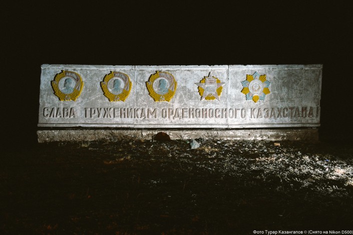 Надпись "Слава труженикам орденоносного Казахстана" можно встретить в Шетском районе Карагандинской области.