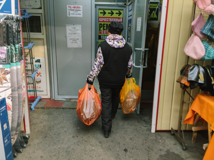 И действительно, на базаре хоть и тихо, но торговля идет. Покупатели с сумками и тележками куда-то спешат.