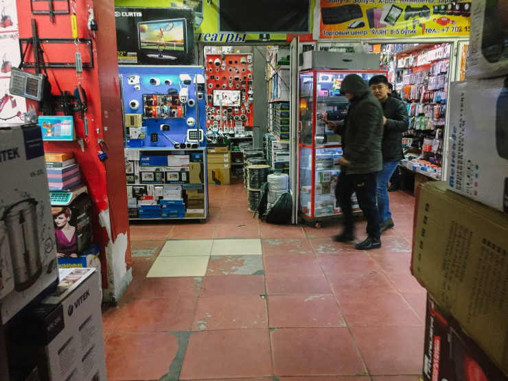 За прилавком с завалами техники стоял юноша и что-то громко объяснял по телефону своему собеседнику на китайском языке. Как оказалось, продавец, то ли Серик, то ли Азамат, разговаривал с партнерами из Китая.