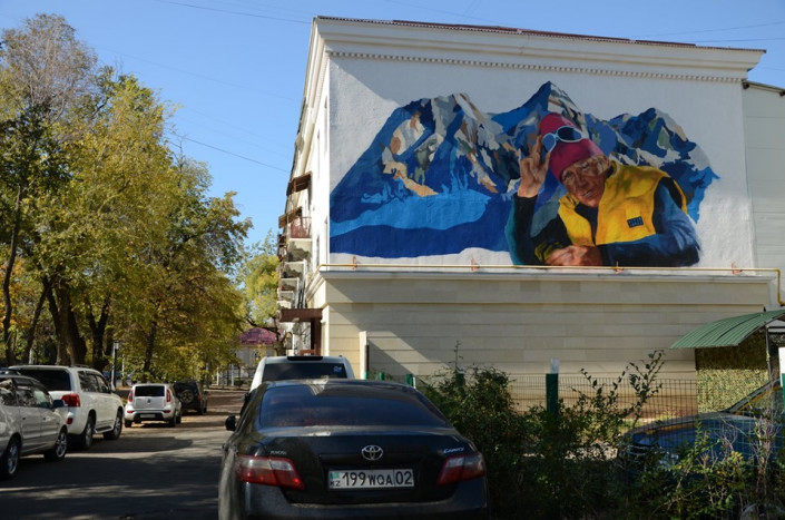 Новый мурал украсил одну из улиц Алматы, сообщает Tengrinews.kz. На одном из домов появилось изображение советского и казахстанского альпиниста, горного гида и писателя Анатолия Букреева.