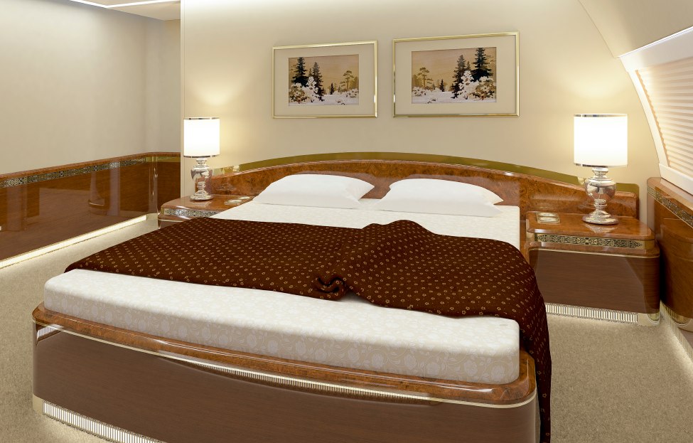Судя по снимкам, обставлены самолеты соответствующим образом: с двуспальными кроватями, позолоченной мебелью, обтянутой дорогой кожей, унитазами и даже тренажерным залом. "Отделка пока сделана черновая. На стенах, как предполагает мой источник, будут висеть некие произведения искусства. Кто сказал, что в стране кризис и надо быть скромнее?" - пишет блогер.