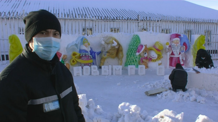 "Группа осужденных из разных корпусов решила сообразить такую композицию из снега, - рассказал один из сидельцев Рымгали Бурбаев. – В нынешнем году количество снега зашкаливает, и чтобы не тратить силы для его вывоза, решили это все воплотить вот в такую фигуру. Снеговику даже имя дали осужденные - Глыба. В следующем году мы хотим установить рекорд и создать еще более громадного снеговика, минимум 10-12 метров".