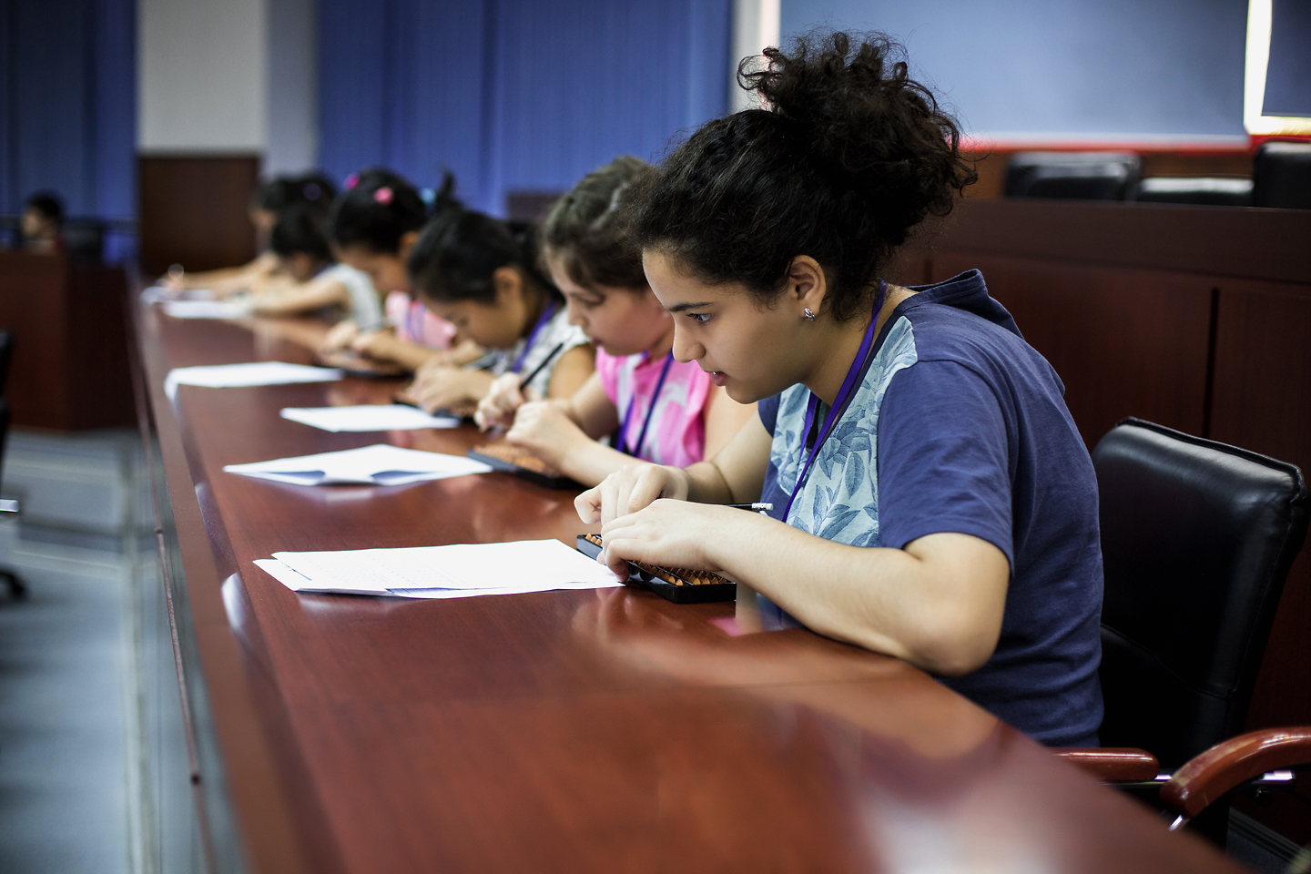 В олимпиаде приняли участие около 200 учеников-гениев центра интеллектуального развития Advance. Дети от 6 до 16 лет продемонстрировали свое умение за считанные секунды работать с огромными числами, они складывали и вычитали многозначные числа в уме и на специальных счетах (абак).