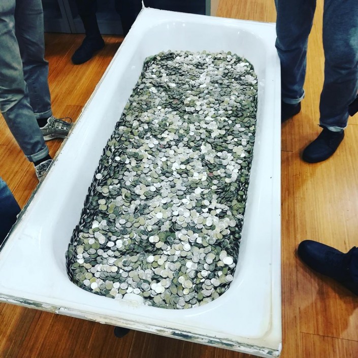 Как оказалось, инициатором шуточной акции стал известный московский блогер Святослав Коваленко. В своем Instagram молодой человек рассказал, что ванна с мелочью весила около 350 килограммов.