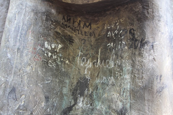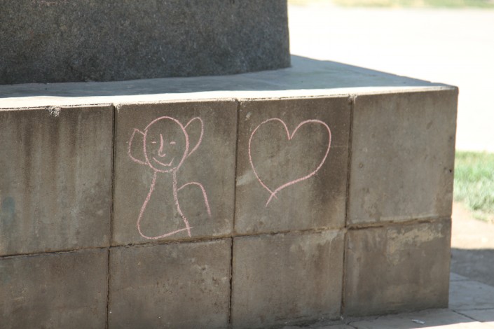 "Плащ и штанины Ленина полностью разрисованы мелом. Я всегда сюда прихожу, сижу на скамейке, читаю книги, гуляю с внуками. И замечаю, как дети рисуют мелом, как будто больше негде рисовать. Для нас, советских людей, когда-то многое значили эти скульптуры. Очень жаль, что молодежь не ценит эту работу", - сетует одна из местных жительниц.