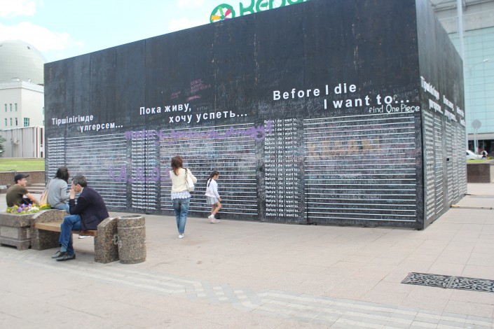 Арт-объект Before I Die расположен на площадке Astana Art Fest 2017 в центре столицы. Каждый желающий может поделиться на стене своими мечтами о будущем. Среди надписей можно встретить и слова пожелания, цели и шутливые фразы. Корреспондент Tengrinews.kz запечатлела, что хотят успеть сделать при жизни казахстанцы.