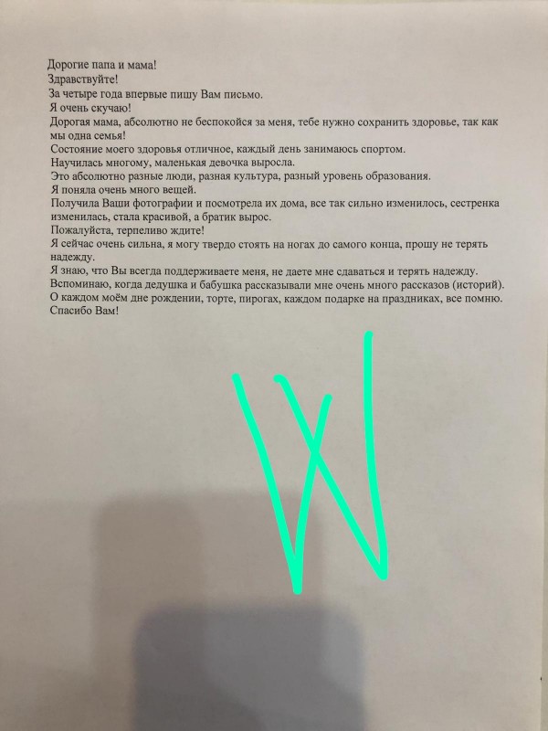 Задержанная в Китае казахстанка Акжаркын Турлыбай написала письмо родителям, передает корреспондент Tengrinews.kz. Выдержки из письма Акжаркын родителям в WhatsApp-чате "СМИ" распространил ее адвокат Сункар Нурмагамбетов. Письмо переведено с китайского языка.