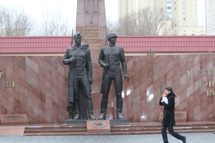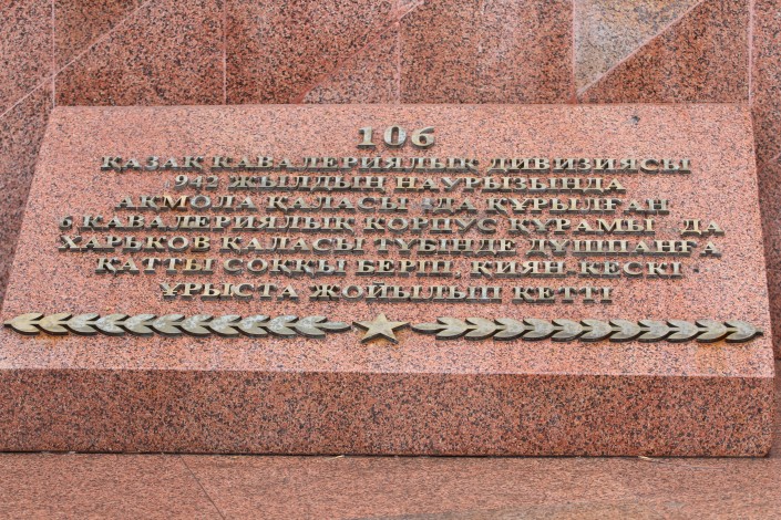 В редакцию Tengrinews.kz обратился читатель, который обратил внимание на памятник двум солдатам, стоящий по проспекту Победы. Как выяснилось, на табличках, которые являются частью монумента, не хватает некоторых букв и цифр, в том числе не читаются даты 1941-1945.