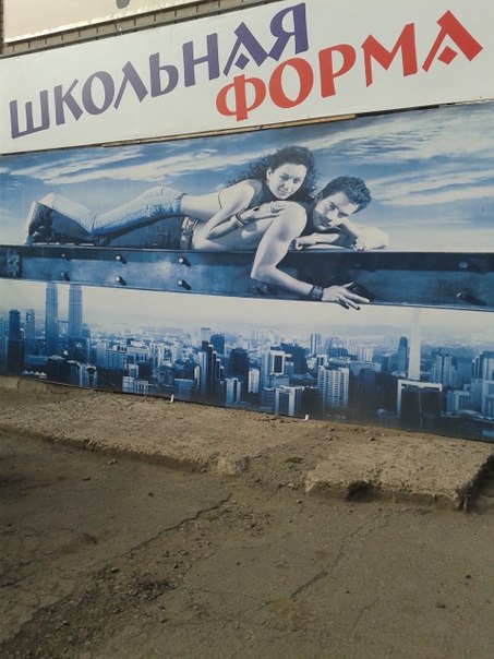 Как отмечает телеканал, магазин, на стене которого разместили баннер, действительно продает школьную форму. Но чтобы увидеть на баннере скромно одетых мальчика и девочку, а не расположенную внизу парочку, нужно отойти на значительное расстояние.
