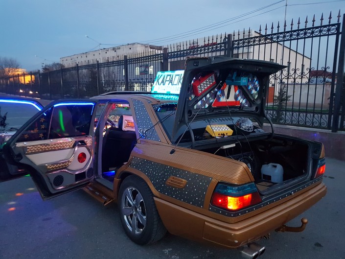 Работник шымкентского аэропорта переоборудовал старый "Мерс" в такси-караоке