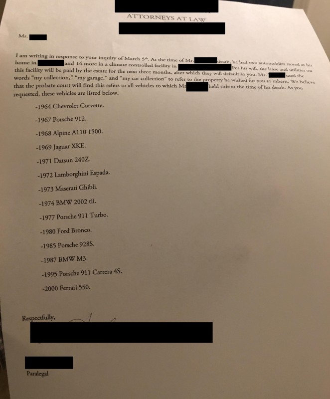 "Когда я был маленьким, родители часто рассказывали о моем сумасшедшем одиноком дяде, который скупал "бесполезные автомобили". Около десяти лет назад мы потеряли связь с ним. Месяц назад я узнал, что он умер и упомянул меня в своем завещании, оставив мне в наследство несколько этих автомобилей. Сегодня я получил их список", - написал пользователь под ником BlackCocktober.